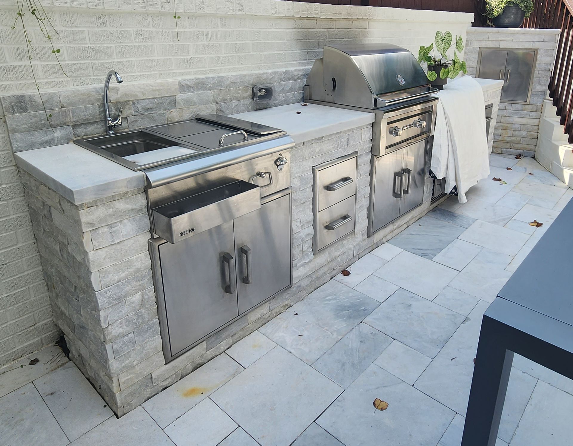 Take your barbecues to the next level with a custom designed, fully equipped outdoor kitchen. Choose from a selection of features including built-in grills and hot-plates, refrigerators, built in bars, and much more. You’ll love how easy and enjoyable entertaining can be! Having your own outside cooking space will make summer just that extra bit enjoyable—and there'll be no mess inside either!